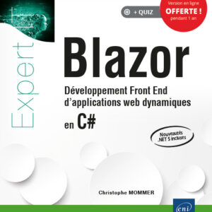 30400 CFACe livre sur Blazor, technologie de la famille ASP.NET, s’adresse aux développeurs C# désireux de développer des applications web dynamiques et interactives, sans avoir à utiliser le langage JavaScript. Pour apprécier au mieux le contenu de ce livre, la connaissance du langage C# est un prérequis, mais connaître ASP.NET n’est pas obligatoire. Des notions de base sont toutefois un plus pour rapidement entrer dans le sujet.