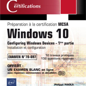 43620 CFAL’examen 70-697 Configuring Windows Devices, est l’un des deux examens requis pour obtenir la certification MCSA Windows 10. Cet examen 70-697 se prépare en deux étapes et ce livre correspond à la première de ces étapes : installation et configuration de Windows 10.