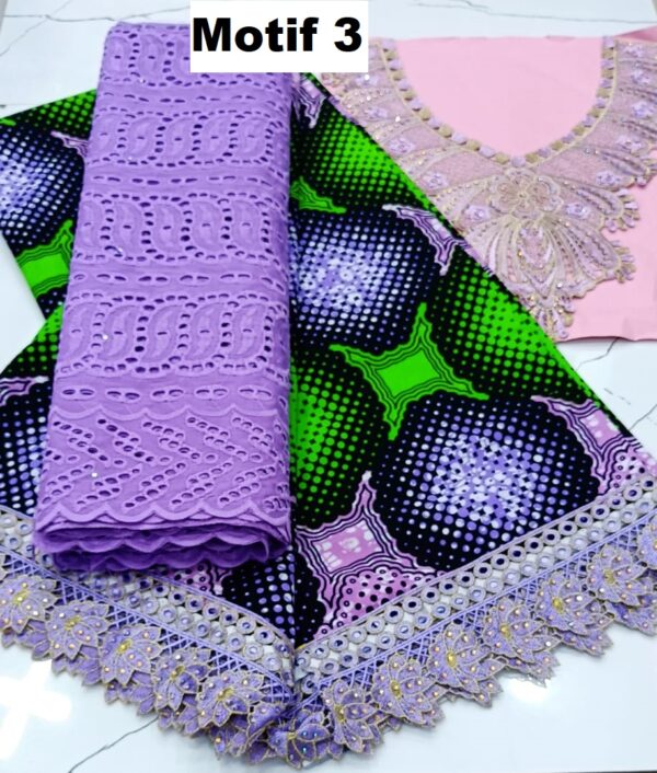 Les pagnes brodés sont fabriqués à partir de tissus de qualité supérieure, avec des motifs soigneusement brodés pour un look authentique et traditionnel. La dentelle est légère et confortable, offrant une liberté de mouvement tout en ajoutant une touche d’élégance à votre tenue.